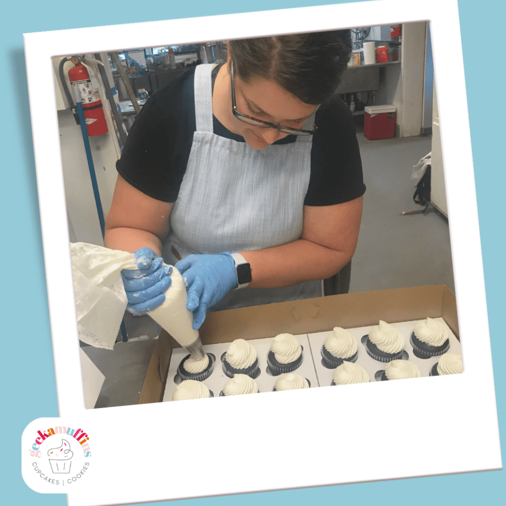 The above photo shows me hard at work, a little bit messy, with a fairly determined but mostly passive look on my face. Mostly, I was trying not to pass out. I was on-site for a wedding, and after every box of cupcakes, I had to go lie down in my van until the room stopped spinning. I had a terrible migraine and managed to mix up the wrong medication before I left for the venue — a terrible combination and an awful mistake that nearly ruined the whole day.