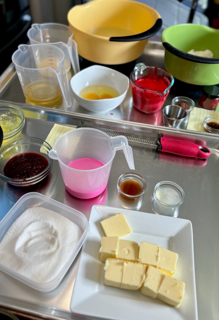 Aside from a detailed checklist of cakes, fillings, buttercreams, macarons, and all things delicious, my next task is to remove eggs, butter, and milk from the fridge to begin to warm to room temperature. This is one of the most important tenets of my baking world — room temperature ingredients. If you’ve struggled with baking in the past and you’re not allowing your ingredients to rise to room temp, you might want to start there.