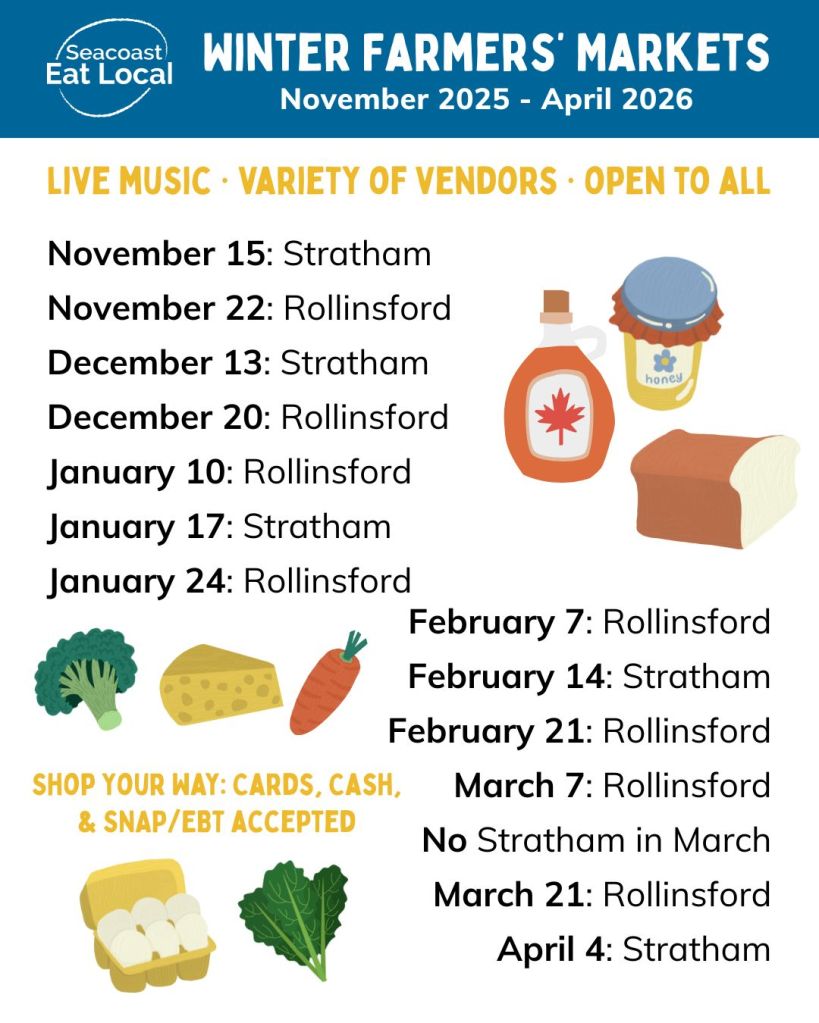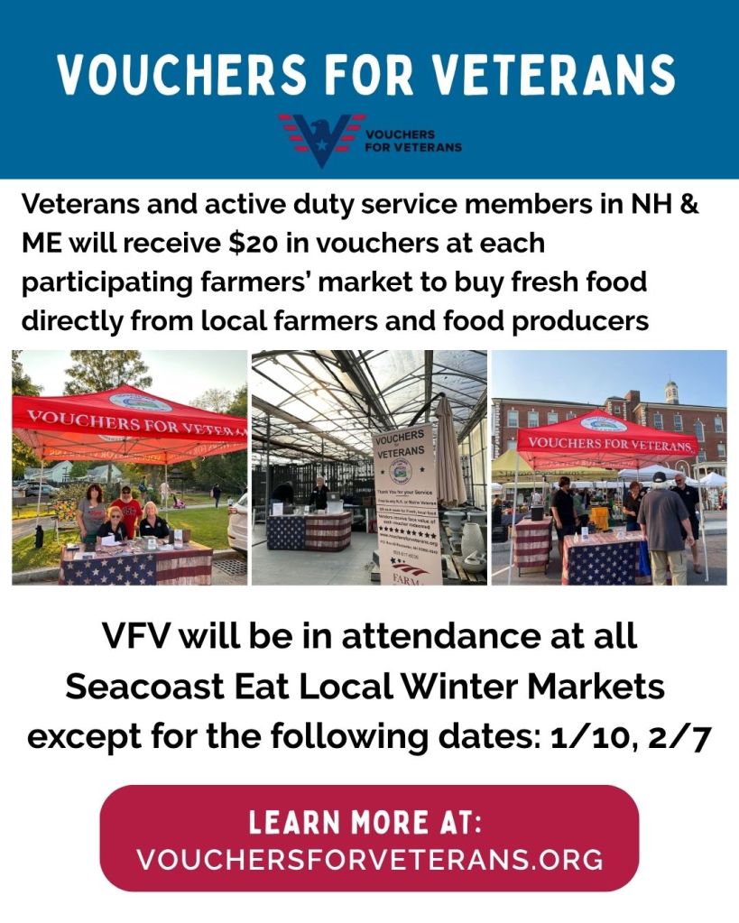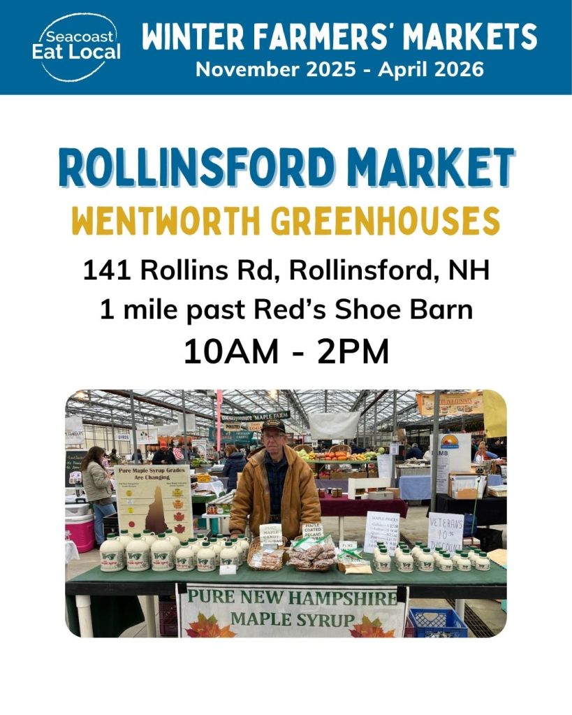 Thank you for all who support and shopped local this summer! Seacoast Eat Local was a wonderful host! I will continue my relationship with SEL for the winter markets – see below. Subscribe to my weekly newsletter to learn more about other places I may pop-up!